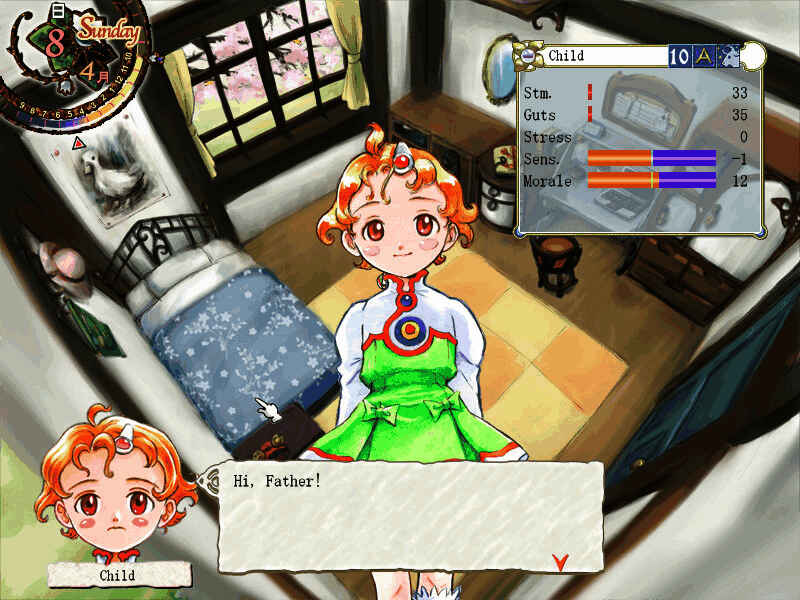 1、女儿的状态可以一目了然的“MOE”系统 搭载了在女儿房间内以Q版角色表示、以动态表现显示出女儿的能力和性格、身体状态、兴趣等的「Motion of Emotion(MOE)」系统。当身体不舒服时会躺在床上、当压力过重时会不经意地嘆气…。是光看着就会觉得很有趣的系统。