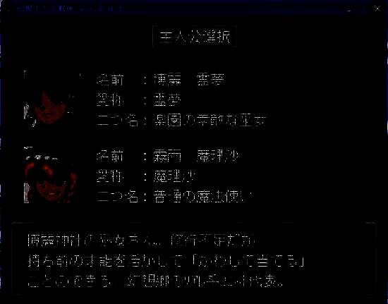 博丽灵梦:典型的真实系,个人能力非常突出,尤其是回避能力极其出色,武器以残弹型为主,虽然武器本身的攻击力不是太高,但是配合自身能力还是可以发挥出相当的威力,是个可以单挑BOSS的怪物,不亏是规格外的城管大人啊。