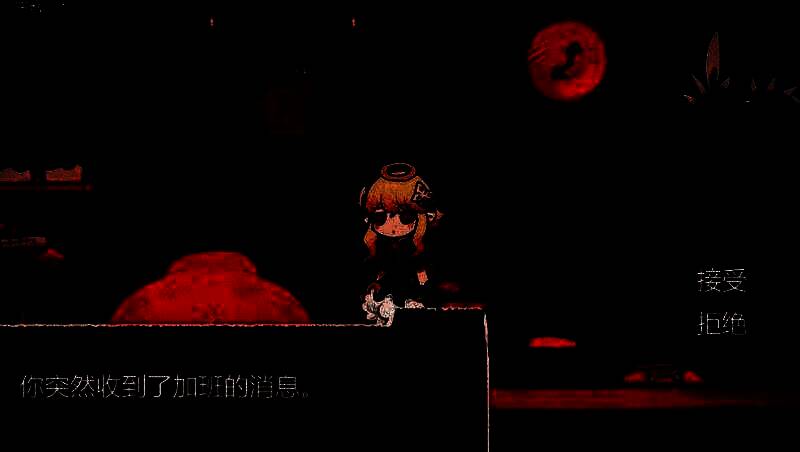 游戏中,玩家每天仅有三次行动机会,每次行动都会推进时间进程。你需要在工作提升业绩、休息降低疲劳值以及探索魔界场景之间做出抉择。一旦疲劳值超过100点,将触发“加班致死”的坏结局。为避免悲剧,玩家可借助道具如啤酒、私酒,或通过场景互动如在街道长椅小憩等方式调节状态,展现智慧与策略的较量。