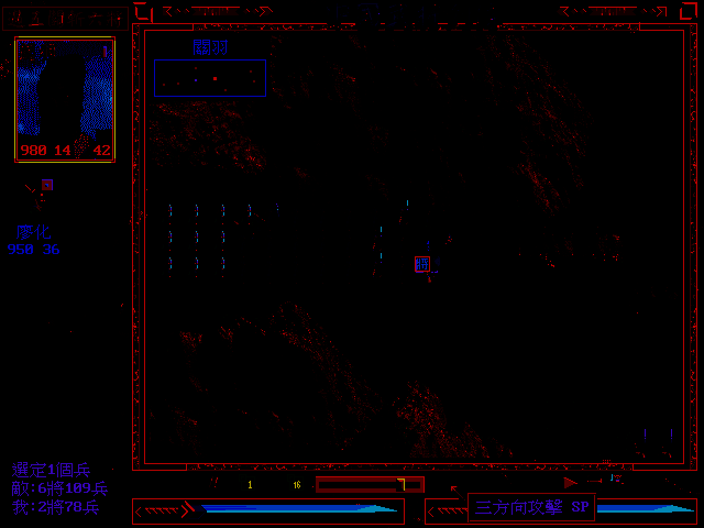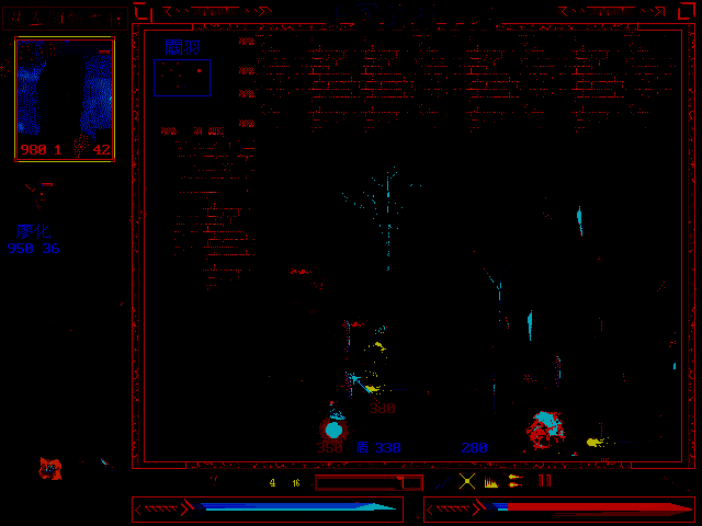 这款游戏是一个即时战略游戏加上RPG要素形成的,所以,在地图上的士兵不但会各自找对象攻击,而且还有炮石和地塴土裂的各种即时效果,尤其是战场上的各种景致,歪倒的旗子,忽亮忽灭的碳火,破碎的器皿,倾颓的围墙,更是在强力的美工下展现出惊人的效果。当然,这只是游? 以上这些形容并不足以将这着游戏的特色完整的描述出来,不如将长板坡这一关的玩法介绍容易使人明白,在长板坡这一关中,赵云由下方进入战场,只见到处的伤兵呻吟着,赵云陆续救起一些伤兵,才探知糜夫人抱着阿斗一路西逃,按下缩小键一看(这个游戏可以按键即时将地图缩小成四这个游戏之所以能够制作出完全的即时效果,全部依赖制作小组开发出一套即时系统和动态贴图系统,这两个系统使得人物能够有各式各样的动作和行为模式,同时还能够让地裂土塴、火光摇曳,也因此,配合着这些效果,游戏将采用CD音质作为游戏配乐的方式,所以,玩家将在这个游一般的即时战略游戏因为程式执行速度等等的种种因素,地图单元不是比较小就是单元数量比较少,中国武将列传却不受这个因素的限制,不但图元比较大,同时还使用超过一格以上的骑马武将的图形,这在即时游戏上绝对是大胆的嚐试,但是也因此使得整个游戏有相当可观的视觉效果。