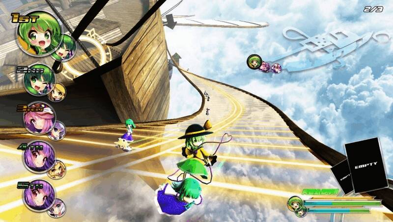 《幻走空中竞速(GENSOU Skydrift)》是一款东方题材的美少女竞速赛车游戏。在游戏中玩家将操控幻想乡中的人物驰骋在幻想乡这美丽的秘境之中,当骑手和充当坐骑的角色可以随意切换,丰富多样的提速符卡可以提速超越别人,有人妨碍你的前进道路,就用你的必杀技能击败对手!