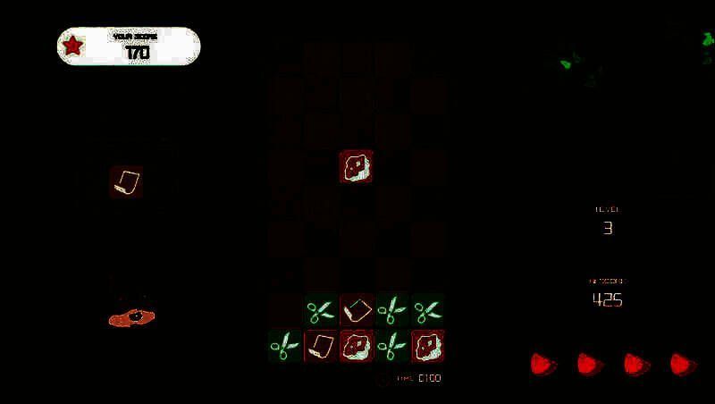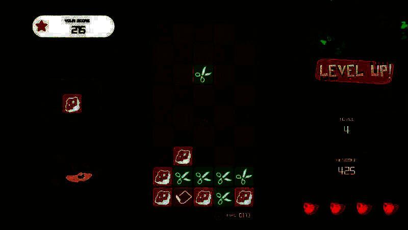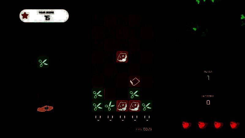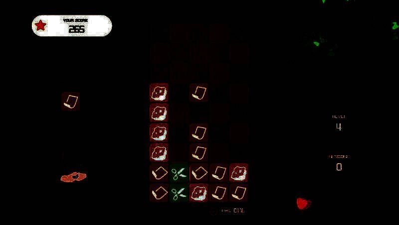 一个无聊的松鼠想制作一个新游戏,于是将俄罗斯方块游戏与经典游戏“石头剪刀布”游戏进行了的融合,然后我们得到了Cut Smash Wrap!