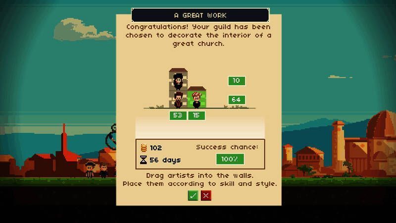 Tom Sykes把《画家公会(Painters Guild)》称为一款“睿智的、流畅的、强健的融合所有经营类乐趣的游戏作品”,同时在游戏中还要保证自己有帅气而又聪明的观点。Lucas Molina制作的这款学院模拟经营类游戏顺利地从alpha测试阶段毕业,完成了制作,如今已经可以在Steam工坊看到它充满着意大利文艺复兴时期风格的身影了。在这款游戏中,玩家要满足赞助人的虚荣心,装饰好你的工坊,不是真正需要自己去画画,而是交由画师去完成。《画家公会》有点像《梦幻餐厅》,只是用画作来代替了猪排,另外还有一些属于开发商自己风格的游戏画面。
