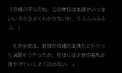 本作的代表角色,支配校园非日常“学校的七大妖怪”之一。学校七大不可思议序列第三位的妖怪,怪谈为“保健室舞动的人偶”。被她作祟的人会受伤,最终变成保健室的常客。