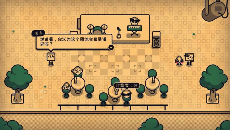 在视觉呈现上,《这个座位有人坐吗?》采用了温馨的手绘风格,整体色调以明黄色为主,营造出轻松愉悦的氛围。角色形象简洁却极具辨识度,通过夸张的表情和服饰细节生动展现各自性格。场景中还藏有诸多互动彩蛋,例如可点击的地图、飘动的婚礼丝带以及动态的影院光束等,进一步增强了沉浸感与趣味性。