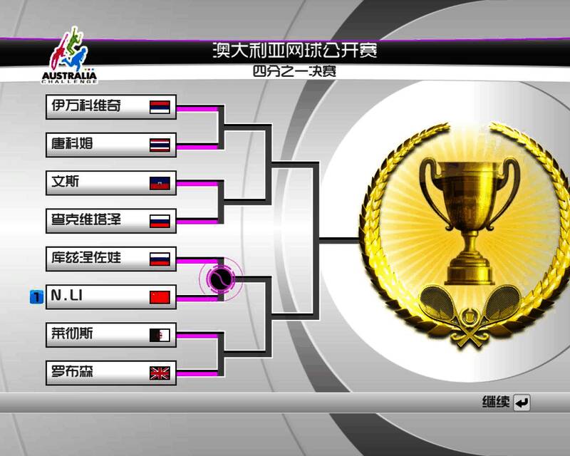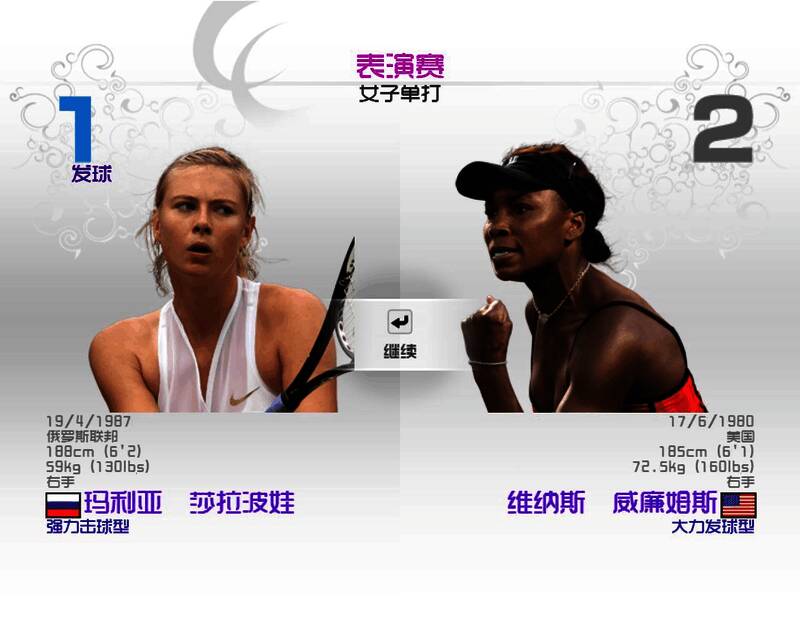 Arcade:街机模式,选一位选手连闯四大满贯的比赛,二局定输赢。normal难度以上可以打duke和king easy难度没见过king