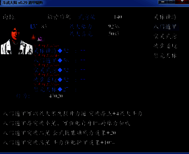 《斗武大陆:遁甲疑阵》是由涂隆俊玩家制作的一款角色扮演类游戏,游戏的背景设定是在一块非常神奇的大陆,里面人人都可以修行,机遇和修行天赋决定了一个人的修行境界,而修行境界则很大程度上决定了一个人的地位,而我们扮演的主角就是一个从小看起来没有修行天赋的废材,被家中的兄弟长老所放弃,直到后来,在山上发生了奇遇......主角的命运就开始发生了逆转。