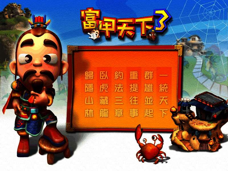 为了让玩家充分融入迷人的三国历史中,《富甲天下3》特别设计了由《黄巾之乱》到《一统天下》的长剧情模式,玩家可以选择爱耍心机的曹操、投机取巧的孙权、或者嗜哭成性的刘备来进行游戏,挑战不同的剧情及关卡,绝对能让喜爱三国的玩家们大呼过瘾。而二代的自由模式也大幅改良了,除了可以选择的主公由原先的四位增为十一位外,每位主公还具备了与众不同的专长喔;此外玩家还能自行设定不同的胜利条件,例如消灭其它对手;占领某一州内所有城池;赚进大把银两;累积一定声望;设定时间比较总积分;甚至通力合作消灭特定的敌人等等,都是好玩又有趣的新选择!