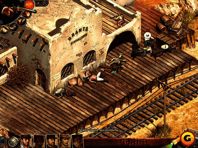 游戏采用了与《盟军敢死队》相同的"实时战术"系统,并将数十种美国西部独有的战斗方式与游戏完美的融合在一起。游戏围绕着这只由6名赏金猎人组成的"牛仔敢死队"在西部的冒险故事展开,共包含25个关卡。城市、印第安部落、西部小镇、城堡、金矿、棉田、沼泽,以及各种不同天色变化,使美丽的西部风光尽收眼底;而游戏中所涉及的各种动作、策略和互动环境更会使玩家觉得耳目一新--你的赏金猎人们不但会使用转轮枪、飞刀、扑克牌、雷管、响尾蛇、迷魂药、眩目等数十项绝技来杀敌诱敌,甚至中国女孩独有的淘气小猴也能助你完成任务。队员们更有丰富的行动方式:进入建筑物、骑马疾驰、破环装置、回收装备、匍匐、攀爬、跳跃、开锁、躲藏、潜行、摧毁障碍等等……而每个敌人各不相同的10种性格以及总数达35种以上的无辜平民和动物都使玩家犹如置身真正的西部时代之中。