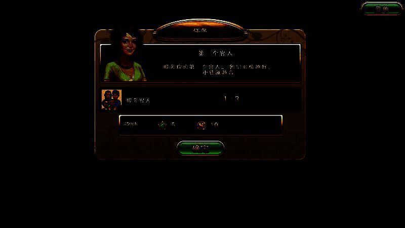 顾客进店坐下后,会立即显示一个笑脸,玩家点击后,会短暂的提示玩家顾客需要的东西,然后会立即消失,如果玩家没记住,可以再点一下顾客,还是能显示的。顾客的笑脸一开始是深绿色的,等待时间越久颜色越淡,代表顾客越不耐烦。