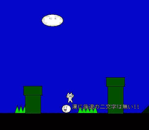 《猫里奥》(Cat mario,原名Syobon Action)是日本的一款2D平台游戏,被称位史上最BT的游戏,是由一名日本民间自己制作的小游戏,发行于2007年2月。就像图中的一样,它的结构类似于《超级马里奥》,只是人物和怪以及游戏内容改变,所以也有人称之为《超级玛丽变态版》,同时网上也产生了许多该游戏的改版。