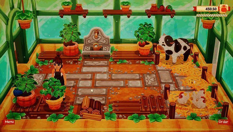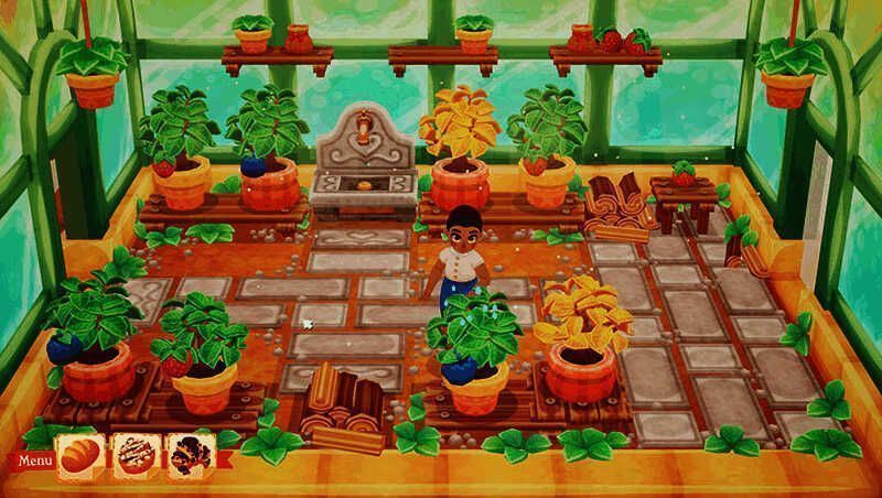 通过购买家具,植物,动物和工具来重建面包店!