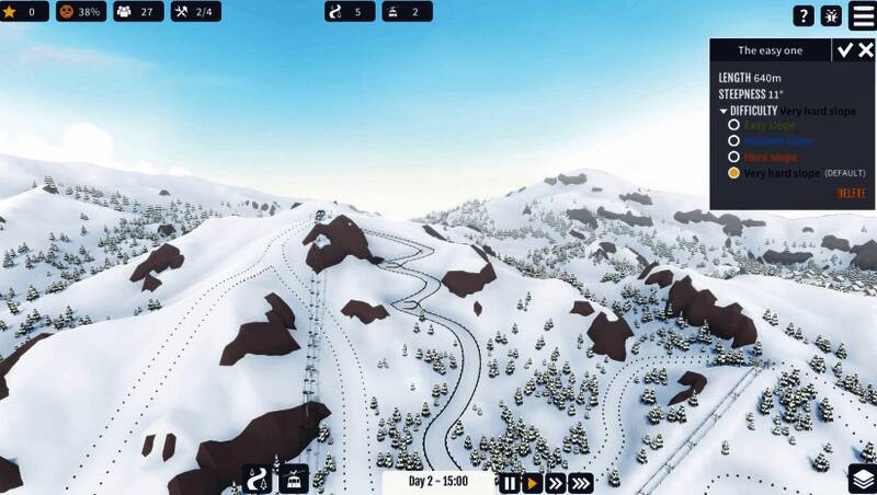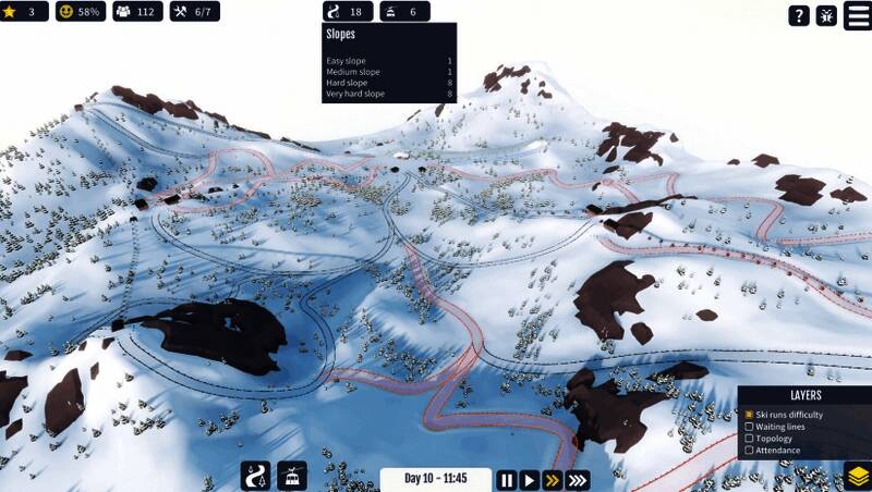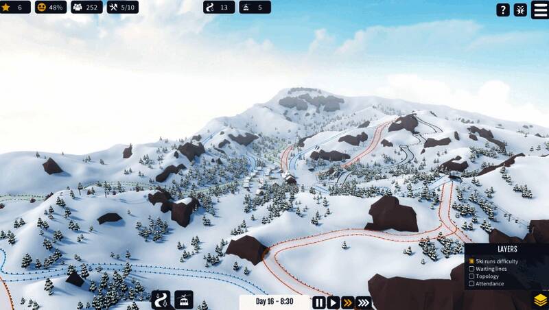驯服这座山,并在其上建造理想的滑雪胜地。回答那些总是想要更多更好的滑雪者的需求。调整赛道,让他们在这里过得愉快。