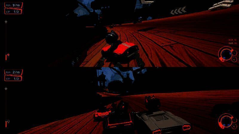 轨道由三种不同的模式组成:圆形竞赛、漂移和“罢工”模式。为了获胜,你应该使用电源UPS,结合你的技能使用存储的能量。游戏有一个故事线战役和本地多人游戏(分屏游戏),允许你在一个设备上玩多达4人。