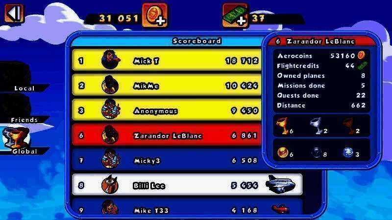 飞机的控制是简单的,但它也需要显示熟练掌握循环,并转向180°。此外,许多危险等待你:skyjackers,不明飞行物,闪电,乌云,似乎还活着,不!注意你的燃料表,拿起硬币和奖金,收集奖杯,升级你的飞机,完成任务,张贴你的成功和与朋友和世界其他地方的竞争是所有伟大设计游戏的可能性!