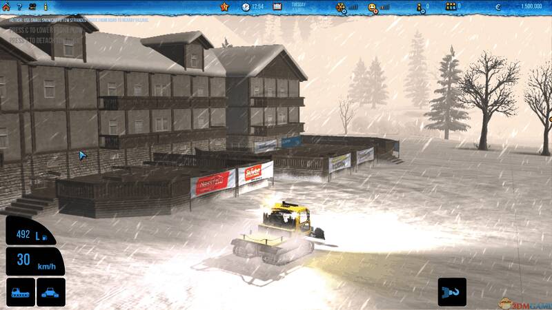 《滑雪世界模拟》这款游戏中的滑雪场模拟非常具有可玩性,玩家需要借助各种工具来完成任务。玩家初始所拥有的铲雪机比较低级,必须通过完成任务赚钱来购买设备。本作还具有白天夜晚功能,天气系统,可以说比较真实的。第一次接触不知道从何玩起的玩家可以通过点击游戏右上角房子图标查看任务、介绍、控制等,游戏支持通过互联网和局域网进行联机,还支持游戏手柄和方向盘。
