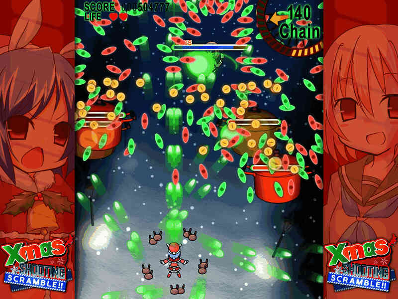 玩家操控可爱的妹子去打败各种敌人,找回给孩子们的圣诞礼物,轻松的背景音乐搭配酷炫无比的弹幕,绝对让你嗨个够。