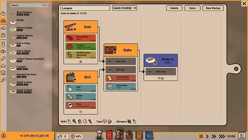 与各种可靠和不可靠供应商进行合作,以确保获得各种食材。使用直观的食谱编辑器自由创建原创食谱,并将其添加到你的菜单中。