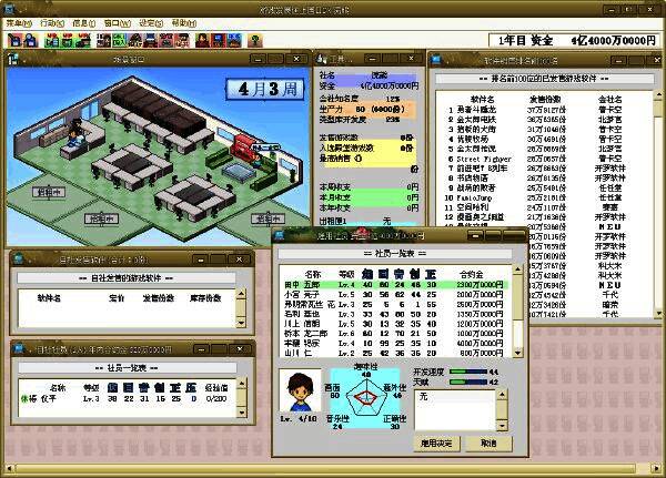 《游戏发展途上国Ⅱ(GameDev2DX)》模拟经营类游戏,玩家经营一家游戏会社,可以自由开发自己喜欢的游戏软件,甚至开发自己的游戏机,游戏没有特定的通关条件。
