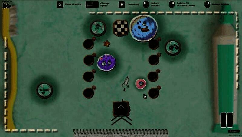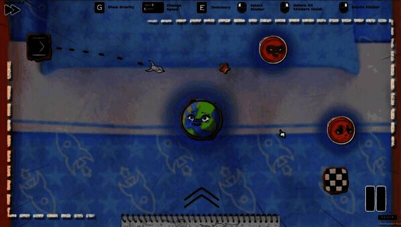 游戏的核心机制围绕“贴纸”与“重力”展开。玩家需要从随身携带的笔记本中取出各种功能独特的贴纸,并将它们放置在关卡中,这些贴纸会生成具有引力的星球或障碍体。通过巧妙布局,利用牛顿物理学中的万有引力原理——即引力与质量成正比、与距离平方成反比——来引导飞船沿着理想轨迹滑行,最终安全着陆。