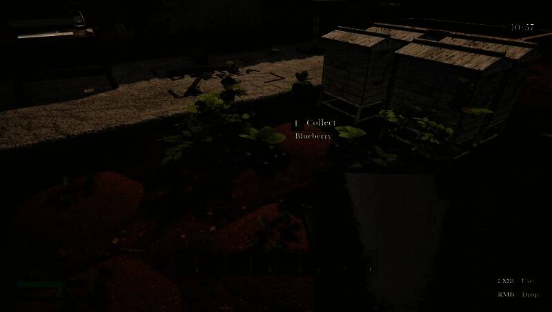 在《Harvest Scream》中,玩家将经历严酷的动态昼夜循环:白昼时分,阳光洒落在田地之上,你可以播种作物、照料蜜蜂、钓鱼养畜,享受片刻的平静与成就感。这些看似平凡的农耕活动不仅是生存所需,更是积蓄资源、稳定心智的关键。然而,当夜幕降临,森林深处开始低语,怪物悄然出没,原本熟悉的环境变得陌生而危险。你必须手持工具或武器,深入黑暗,追踪被称为“异象”的扭曲实体,修复它们所造成的裂痕——这是逃离这个腐化世界唯一的希望。