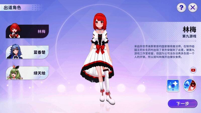 游戏采用鲜明的日系动漫2D美术风格,角色立绘精致且富有辨识度,如林梅的魔法袍与星杖、绿天绘随身携带的画笔元素等细节均体现角色个性。整体界面设计简洁直观,色彩明亮轻快,UI采用扁平化风格,便于玩家快速上手。尽管直播动画等动态表现较为简约,但静态叙事与菜单交互流畅自然,营造出温馨而富有沉浸感的视觉体验,契合其休闲向核心定位。