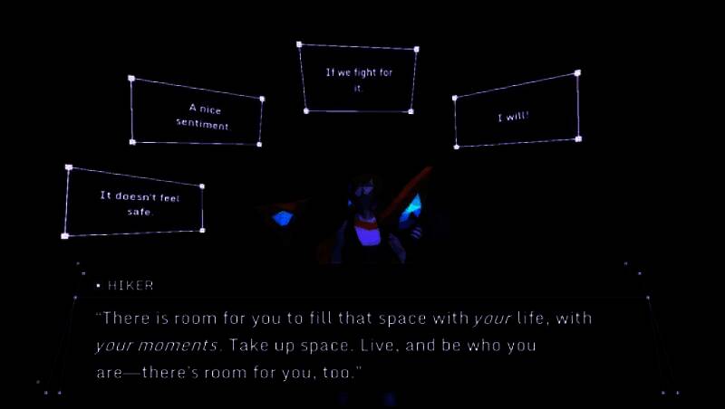 《冥想空间》摒弃了传统游戏的任务系统与成败机制,取而代之的是一种近乎冥想的状态。玩家可自由选择旅程路径,进入不同的“途中”场景,如24小时便利店、无人机场、昏暗地铁站等。每个地点都是一段思绪的容器,通过与神秘角色对话、观察环境细节或触发隐喻式解谜,逐步展开内心的对话。