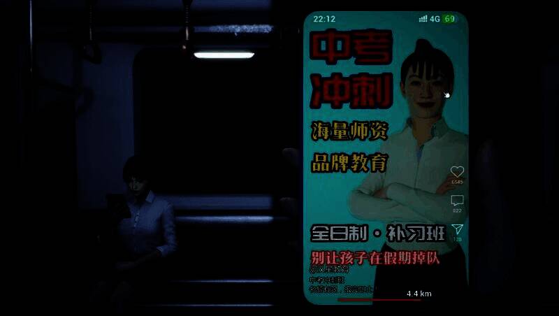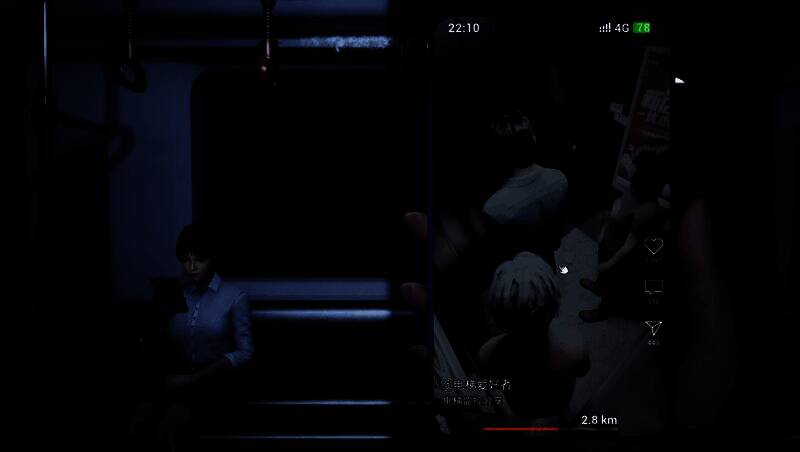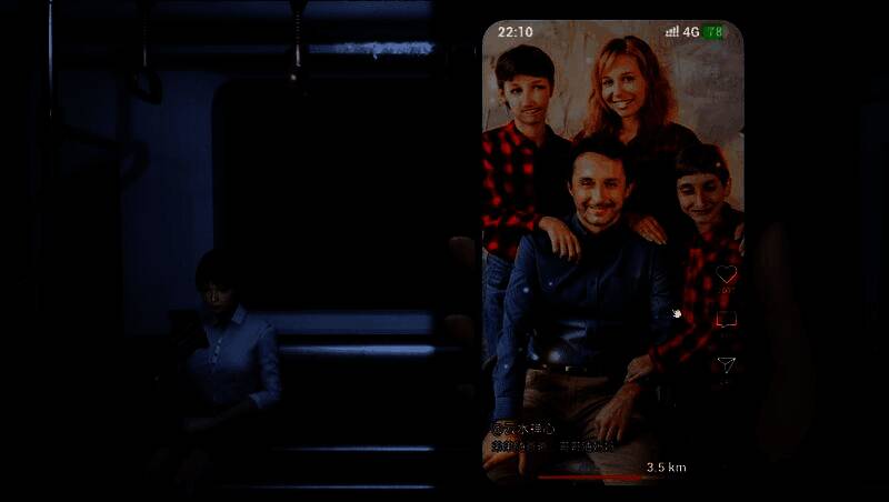 游戏采用第一人称视角全程模拟真实手机界面,极大增强了代入感。视觉上通过高反差手法区分正常与异常内容:日常场景清晰温和,而异常视频则采用低分辨率监控风格、画面畸变与血色滤镜,形成强烈冲击。昏暗车厢的微光映照在屏幕上的倒影,仿佛隐藏着不可见的窥视者,环境音效与突发异响巧妙结合,让恐惧从听觉渗透至心理深处。