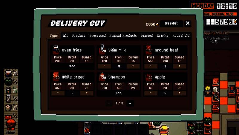 在《打骨折超市日记》中,玩家需全面掌控超市的日常运营,涵盖从货架布局到人员调度的每一个细节。游戏提供高度自由的店铺设计系统,允许玩家自定义商品陈列区与功能分区,合理规划顾客动线以提升购物效率和销售额。采购环节强调谈判技巧与成本控制,玩家可通过签订“利润丰厚的贸易协议”获得低价货源(如冷冻薯条等生活必需品),并根据市场反馈灵活调整定价策略。此外,面对客流高峰或突发状况——例如顾客争执、库存告急——合理配置员工成为维持运营顺畅的关键。