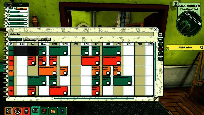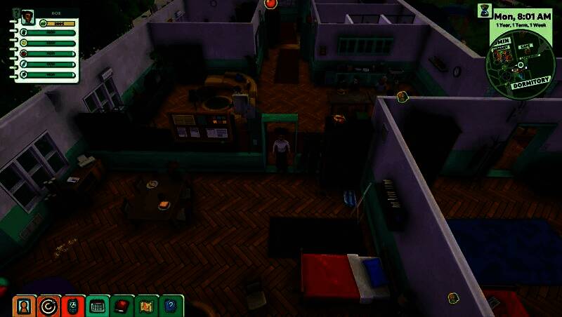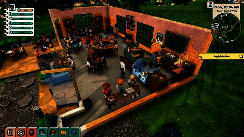 在《校园生活》中,玩家需巧妙平衡时间与资源,全方位塑造角色发展路径。学术方面,通过按时上课、完成作业与紧张备考提升GPA,不同课程还将影响智力、创造力等属性成长;社交层面,可加入兄弟会或姐妹会,参与神秘仪式与年度庆典,亦能发展浪漫关系、组织派对或投身社团活动,逐步提升人气值与影响力;生活经营则涵盖兼职打工赚取学费、个性化装饰宿舍空间,并合理规划每日行程,在学习、娱乐与工作之间找到最佳节奏。游戏以学年为单位推进,最终成就取决于你在学术、人际关系与校园声誉上的综合表现。