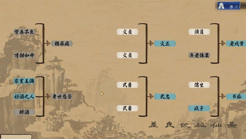 游戏中的角色成长基于“智、才、谋、勇、德、体”六大核心属性,并结合忠诚度、饱食度、血量等关键状态值构成深度养成体系。每个角色拥有独特的词条组合,这些词条不仅能影响能力倾向,还能通过合成触发隐藏特性——例如“清廉正直”可能提升百姓声望,而“老谋深算”则增强弹劾成功率。一旦忠诚归零或生命耗尽,角色将永久退场,使每一次决策都充满风险与重量。