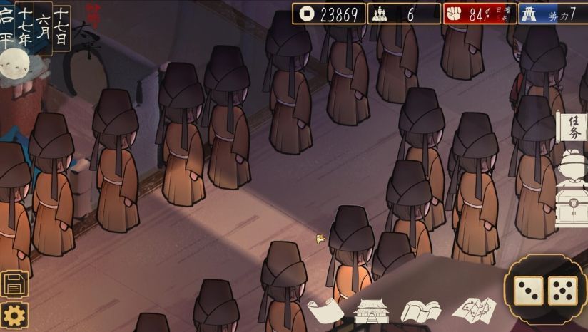 在《权臣》的官场生态中,权力并非仅靠功绩获取。玩家需灵活运用贿赂、安插亲信、制造丑闻乃至暗杀等手段,操控官员任免与职位更迭。委派合适的党羽担任要职(如户部尚书、御史大夫)可大幅提升资源掌控力与政策执行力。终极目标是全面掌控财政大权——户部,从而左右国家经济命脉,奠定登顶首辅之基。