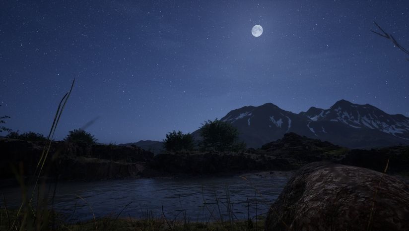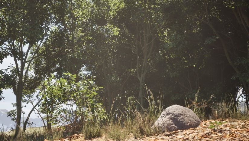 《石头模拟器》的艺术风格采用低多边形建模,色彩随季节动态演变:春天青翠欲滴,夏日炽热明亮,秋季转为棕红斑驳,冬季则覆上苍茫白雪,形成一种近乎诗歌般的视觉节奏。光影系统精细模拟昼夜更替,不同角度的阳光投射出长短不一的阴影,强化了时间流逝的真实感知。