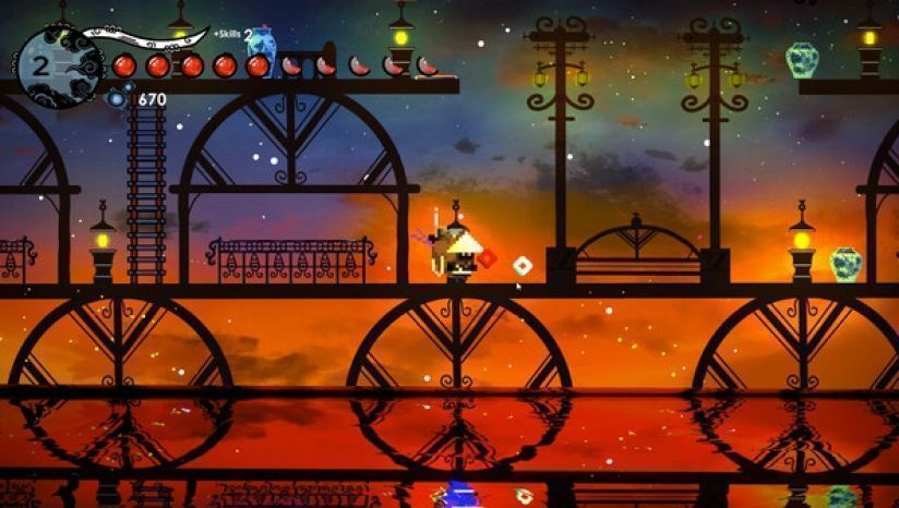 《Miwa: The Sacred Fox》在传统2D平台跳跃的基础上,加入了丰富的操作机制:包括二段跳、冲刺、冲锋斩击等动作元素,使关卡移动更具节奏感与挑战性。游戏最核心的特色在于双角色切换系统——Shima Nobu擅长战斗与触发机关,而狐狸Miwa则能进入狭小空间、感知灵脉流动,两者需协同配合才能破解层层谜题。随着冒险深入,玩家可通过收集“灵魂”来升级角色能力,提升生命值上限,并解锁新的互动技能,增强探索自由度。
